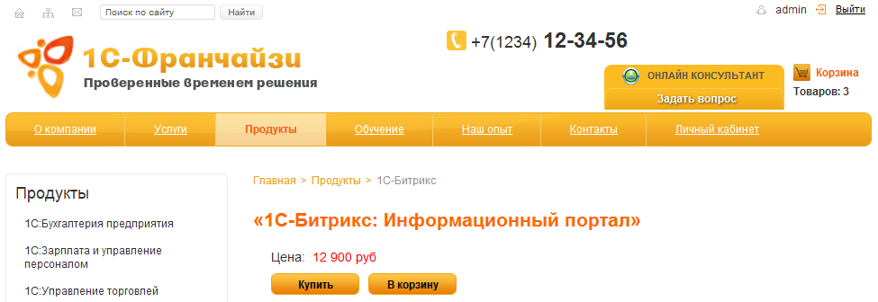 - Предоставлять покупателям новые интернет-сервисы за счет использования модулей, входящих в состав «1С-Битрикс: Интернет-магазин 1С:Франчайзи»: