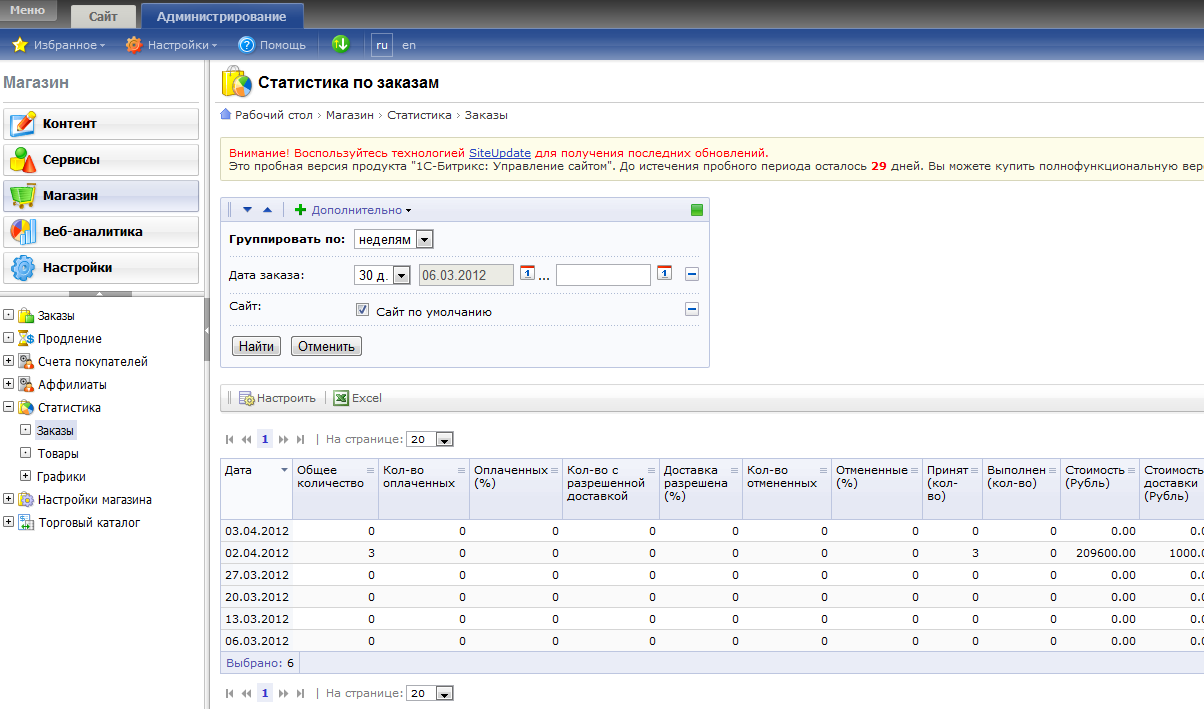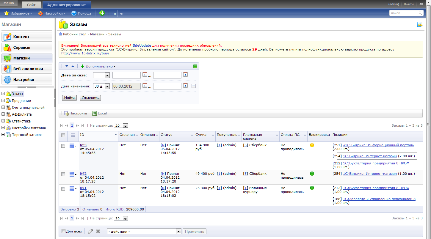 Подобным образом интернет-магазин выглядит и работает с точки зрения покупателя. А как же владелец интернет-магазина контролирует процесс продаж, какие инструменты доступны ему для этого?