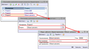 Следующим действием будет настройка перечня разрезов в регистре сведений «Настройка дополнительных разрезов бюджетирования».