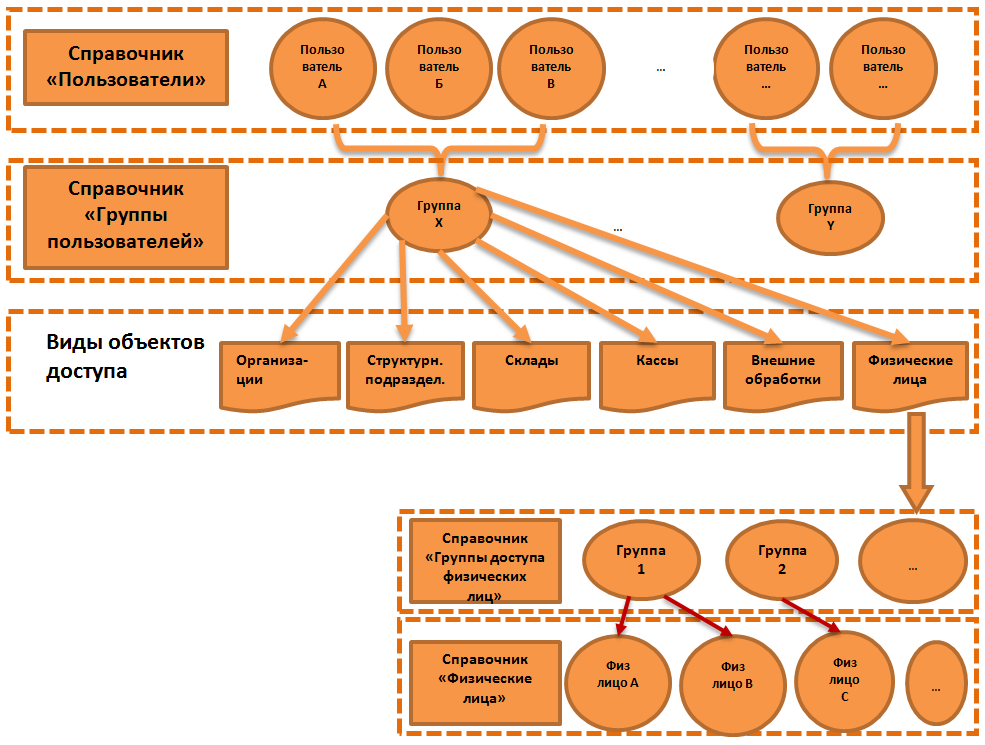 - Физические лица (на основании их вхождения в группы доступа физических лица