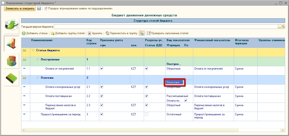 Созданную формулу необходимо указать в бюджете для группы статей.