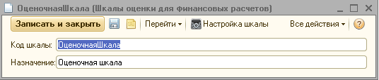 Элемент данного справочника хранит название шкалы, применяемой в формулах расчета финансовых показателей. Для настройки интервалов и значений шкалы необходимо воспользоваться командой «Настройка шкалы».