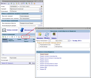 Использовать контролируемые значения можно как при планировании оборотов по статьям, так и при регистрации фактических данных в интерактивном режиме.