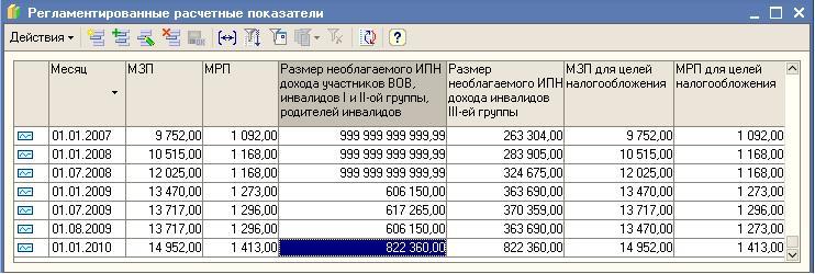 В 1С:Бухгалтерии 8 для Казахстана размер необлагаемого ИПН дохода инвалидов, в разрезе групп инвалидности указывается в регистре «Регламентированные расчетные показатели» (Меню Зарплата – Общие параметры расчета зарплаты).