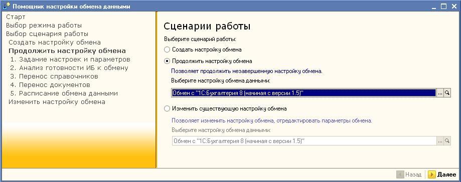 Помощник настройки обмена данными