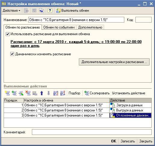 Еще одним важным отличием нового механизма обмена является возможность настройки автоматического обмена данными с использованием расписания.
