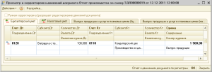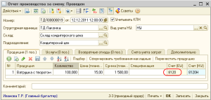 Шаг 3: Выпуск продукции из материала заказчика, после того как собраны все затраты, формируется в конфигурации с помощью документа «Отчет производства за смену» (меню Производство – Отчет производства за смену).