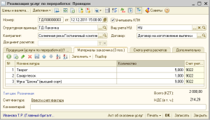 Услуги по переработке сырья отражаются на закладке «Услуги».
