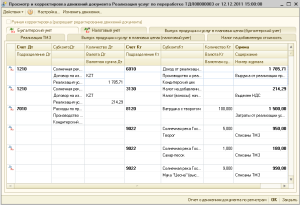 При проведении документа «Реализация услуг по переработке» формируются проводки: