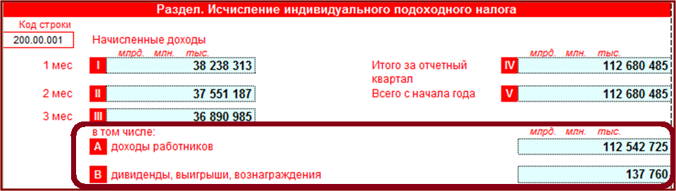 - 200.00.001А доходы работников - отражаются суммы доходов, начисленных работникам за отчетный квартал