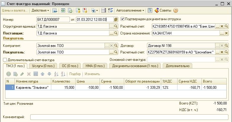 На основании документа можно сформировать счет-фактуру.