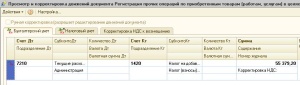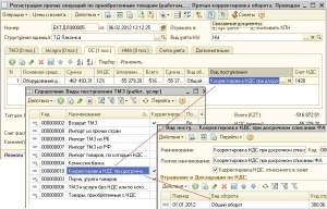 В этом случае табличная часть документа «Регистрация прочих операций по приобретенным товарам (работам, услугам) в целях НДС» заполнится данными документа «Поступление ТМЗ и услуг» и будет легче откорректировать табличную часть по номенклатурным позициям и стоимости.