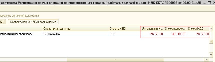 Также сформируются записи в регистре «Корректировка НДС к возмещению».