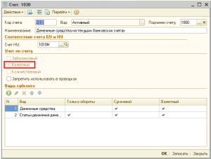 Ввод начальных остатков по счетам бухгалтерского учета, у которых установлен признак «Валютный»