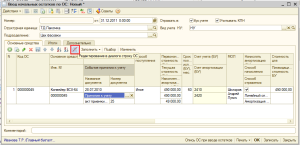 Для быстрого заполнения табличной части однотипными объектами основных средств, имеющими одинаковые наименования, нужно ввести в табличную часть хотя бы один такой объект. Затем следует воспользоваться кнопкой «Заполнить» в командной панели табличной части. При выборе в выпадающем меню пункта «По наименованию» табличная часть будет заполнена объектами основных средств, имеющими такое же наименование, как у введенного первоначально.