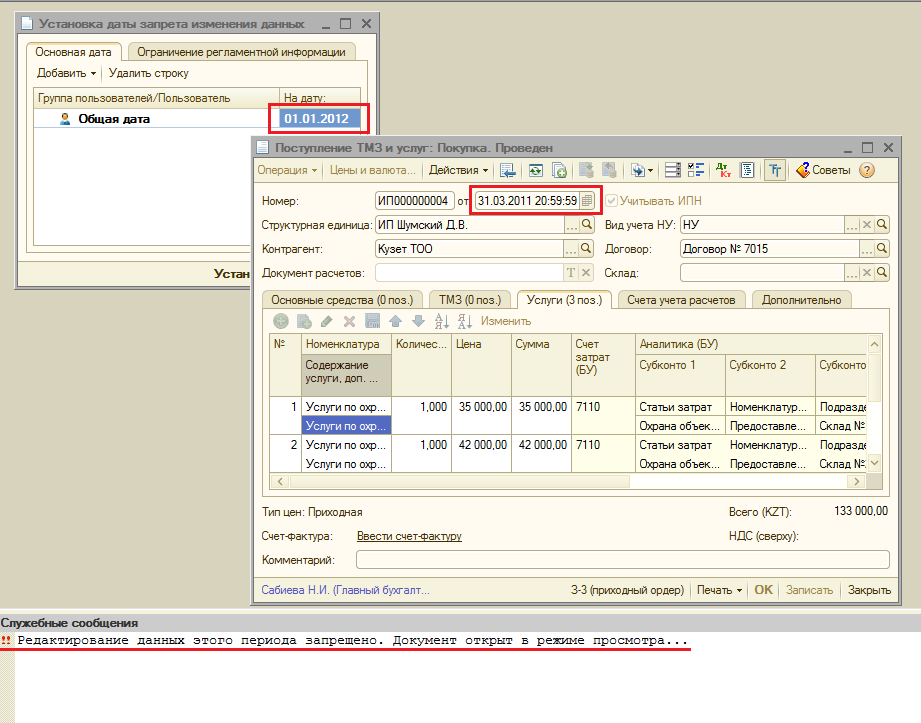 Например, установлена дата запрета изменения данных 01.01.2012 года.