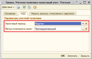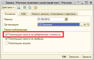 Соответственно в случае если субъект подает заявление на постановку на учет по НДС датой, отличной от даты начала месяца, например, 15 июля, то в соответствии с требованиями НК РК в регистре «Учетная политика (налоговый учет)» новые параметры учета НДС необходимо установить по состоянию на 1 августа. Такими параметрами являются: признак «Плательщик налога на добавленную стоимость», «Налоговый период» и «Метод отнесения в зачет».