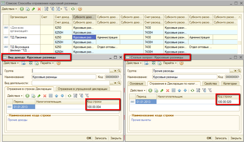 Сведения о счетах бухгалтерского, налогового учета, их аналитики, для отражения доходов и расходов по курсовой разнице хранятся в регистре сведений Способы отражения курсовой разницы.