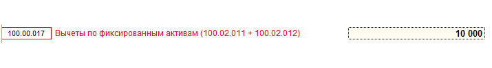 Пример: Организацией приобретены услуги по текущему ремонту основного средства. Стоимость услуги составляет 10 000 тг. Приобретение услуги отражается по строке 100.00.009IIIH. Отнесение приобретенной услуги на последующие расходы отразится по строке 100.00.009VI. Таким образом, в строке 100.00.009 вычет не образуется.