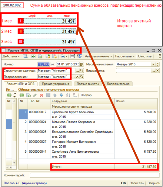 Если признак снят, то сумма исчисленного налога, не будет равняться сумме удержанного. В этом случае, сумма удержанного ИПН будет рассчитываться документом «Удержание ИПН и ОПВ по налоговому учету» и налог будет перечисляться в зависимости от выплаченного дохода.