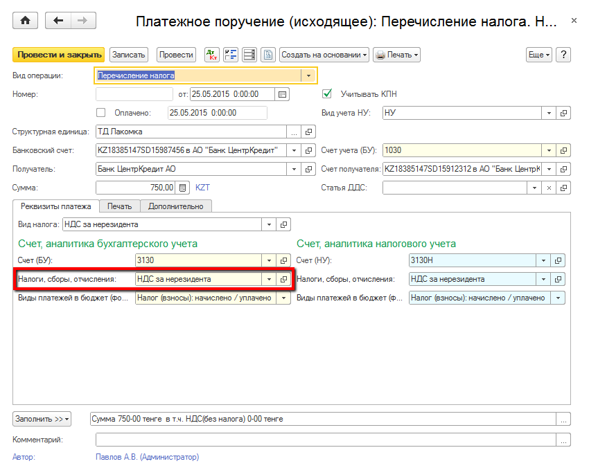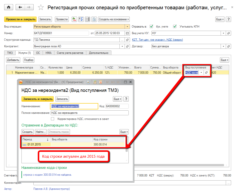 Учет НДС за нерезидента в конфигурации «Бухгалтерия 8 для Казахстана»