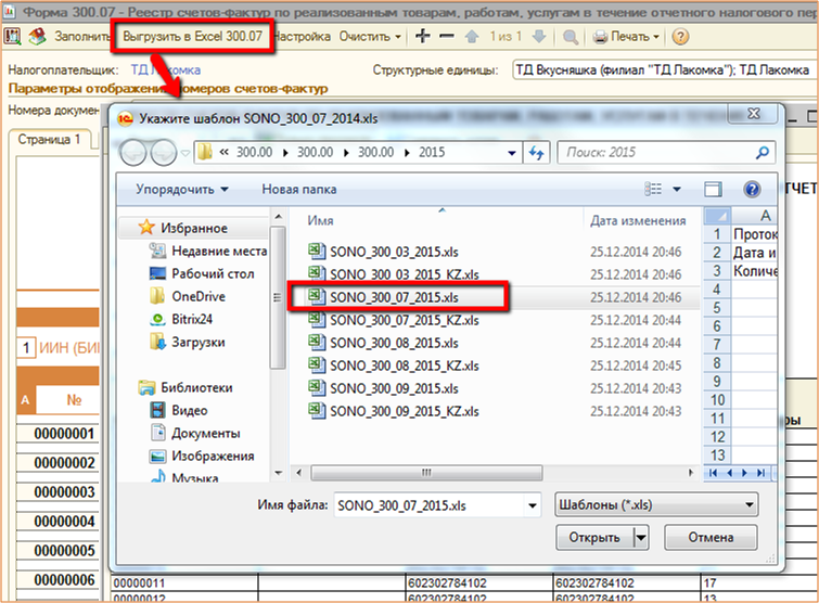 Приложение 300.07 предназначено для отражения выданных счетов-фактур. В реестре отражаются счета-фактуры, у которых дата совершения оборота приходится на отчетный период, вне зависимости от даты выписки самого счета-фактуры.