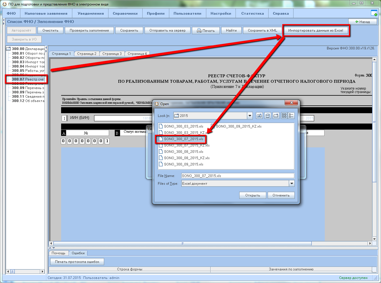 Реестры счетов-фактур могут быть выгружены в Excel. Для выгрузки реестров предварительно необходимо скачать шаблоны формата Microsoft Office Excel, для заполнения приложений к Декларации по НДС. Скачать их можно на сайте , в разделе Деятельность – Информационные системы – ИС СОНО – Программное обеспечение. Скачанный файл необходимо распаковать.
