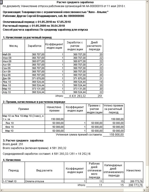 Расчет оплаты по среднему заработку в конфигурации реализован по единому принципу. Такой подход использован для упрощения понимания пользователем и контроля корректности результатов начислений.