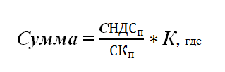 СЗ – сумма затрат (например, это может быть стоимость внеоборотного актива, начисленная амортизация и т.д.),