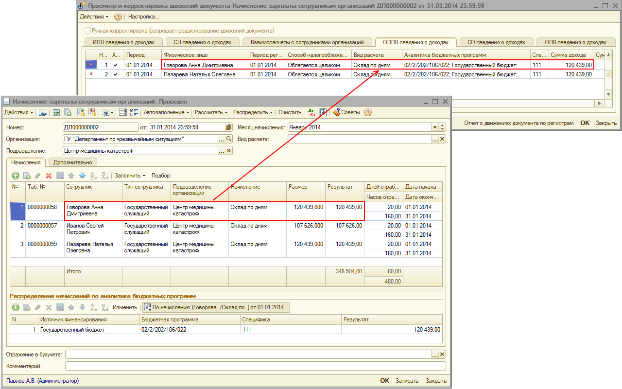 Документами «Начисление зарплаты сотрудникам организаций» и «Оплата по среднему заработку» данные регистрируются только по тем сотрудникам, для которых установлена необходимость исчисления ОППВ.