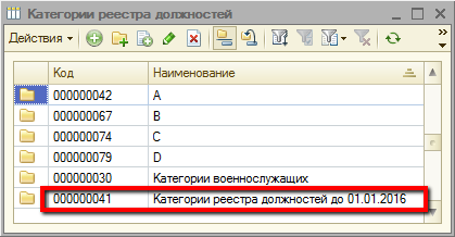 При помощи признака «Перенести старые категории в отдельную группу» осуществляется перенос элементов справочника «Категории реестра должностей», действовавших до 01.01.2016 года, в отдельную группу. Перенос осуществляется только тех элементов, которые не относятся ни к какой из групп.