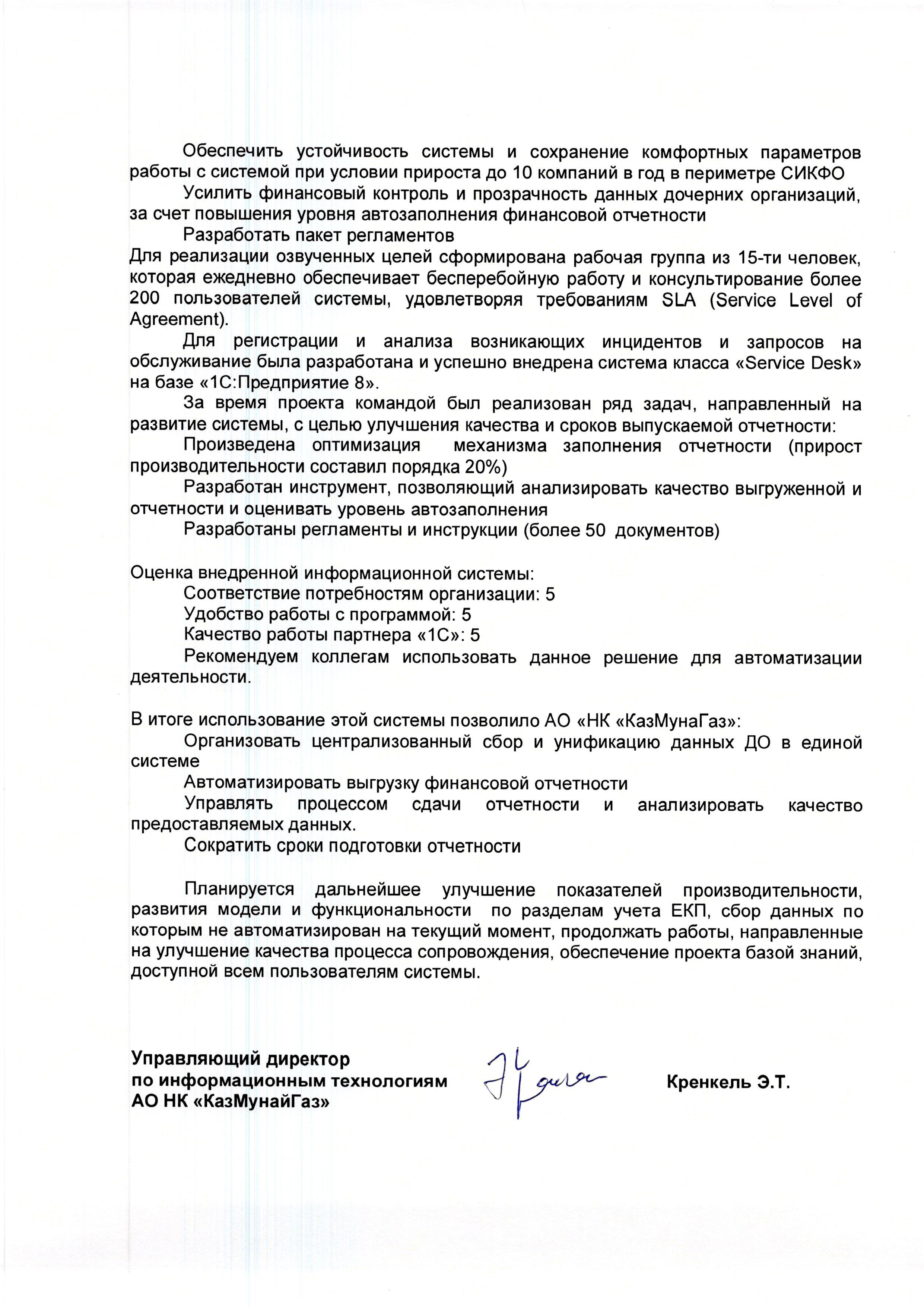 Управляющий директор по информационным технологиям АО НК «КазМунайГаз» Кренкель Э.Т.: