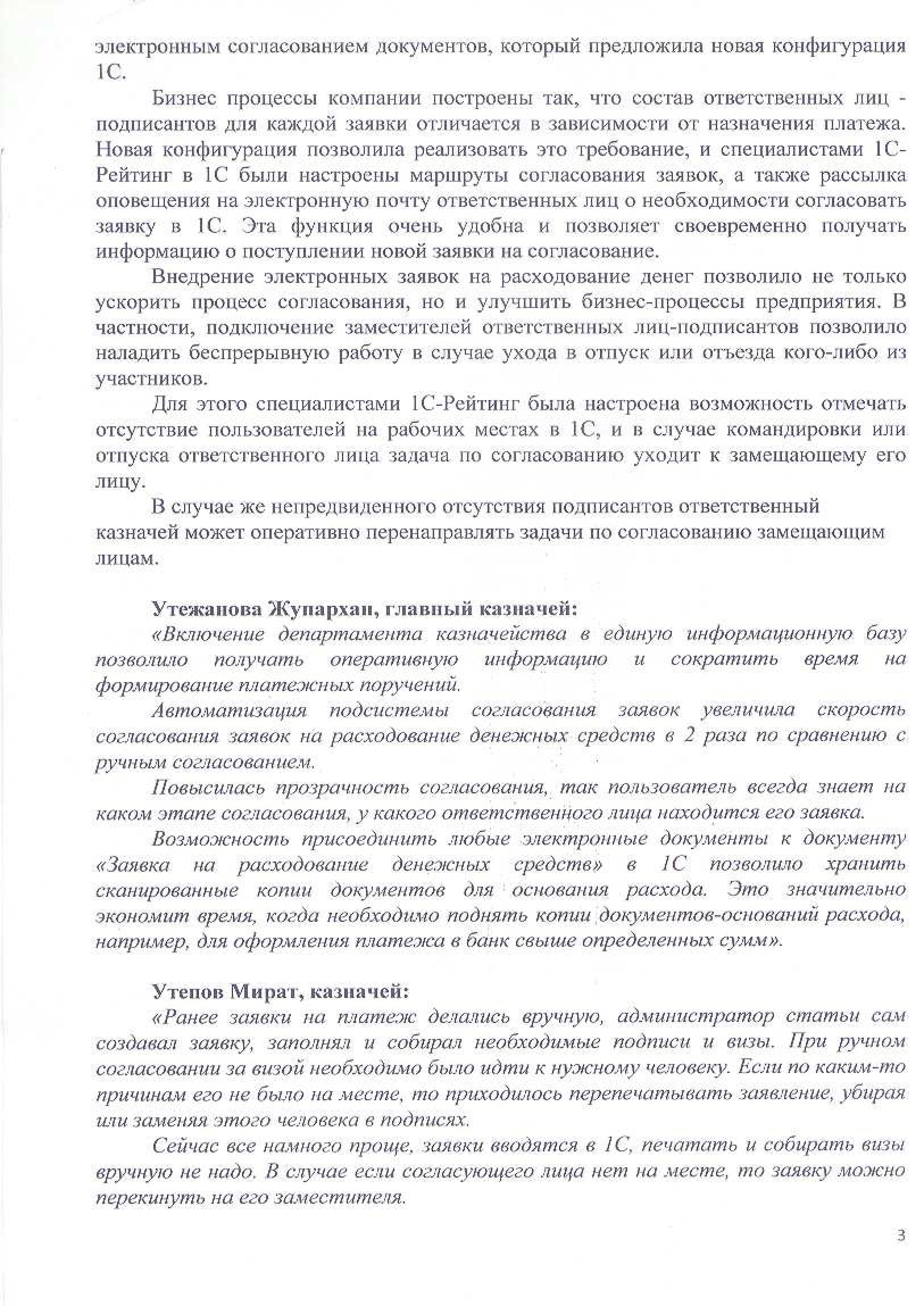 «Включение департамента казначейства в единую информационную базу позволило получать оперативную информацию и сократить время на формирование платежных поручений.