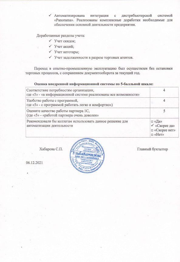 - Автоматизирована интеграция с дистрибьютерской системой «Panorama». Реализованы комплексные доработки необходимые для обеспечения основной деятельности предприятия.