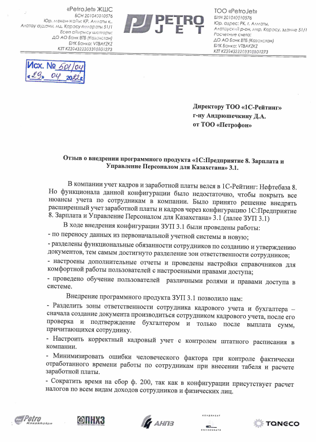 Компания вела учет кадров и заработной платы в «1С-Рейтинг: Нефтебаза. Функциональные возможности данного отраслевого решения не покрывали индивидуальные особенности ведения учета компании. Было принято решение внедрить расширенный учет заработной платы и кадров через конфигурацию «1С:Предприятие 8. Зарплата и Управление Персоналом для Казахстана» 3.1 (далее ЗУП 3.1) Выполнены следующие работы: