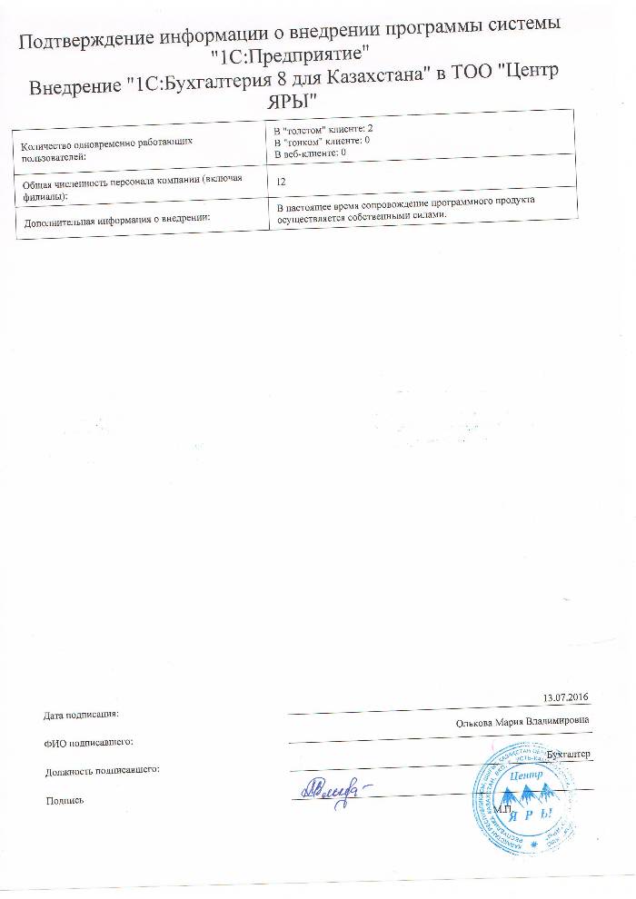 | Внедренное типовое решение: | 1С:Бухгалтерия 8 для Казахстана |