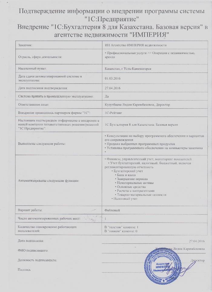 1С:Бухгалтерия 8 для Казахстана. Базовая версия