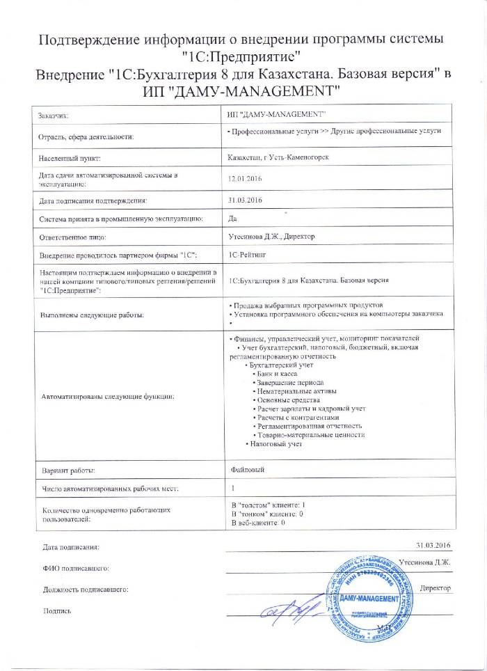 | Внедренное типовое решение: | 1С:Бухгалтерия 8 для Казахстана. Базовая версия |