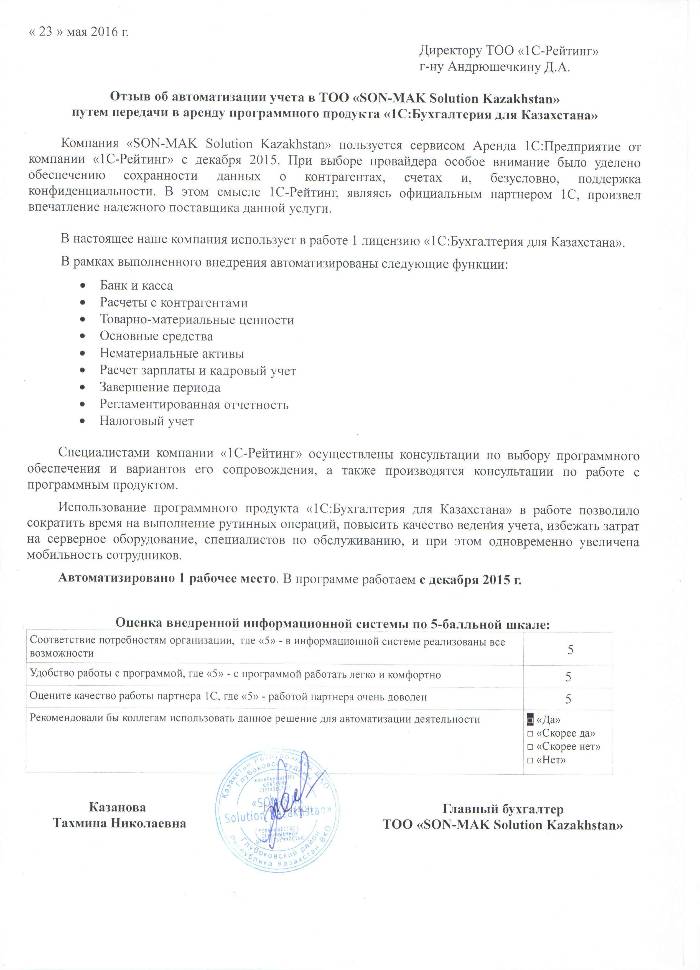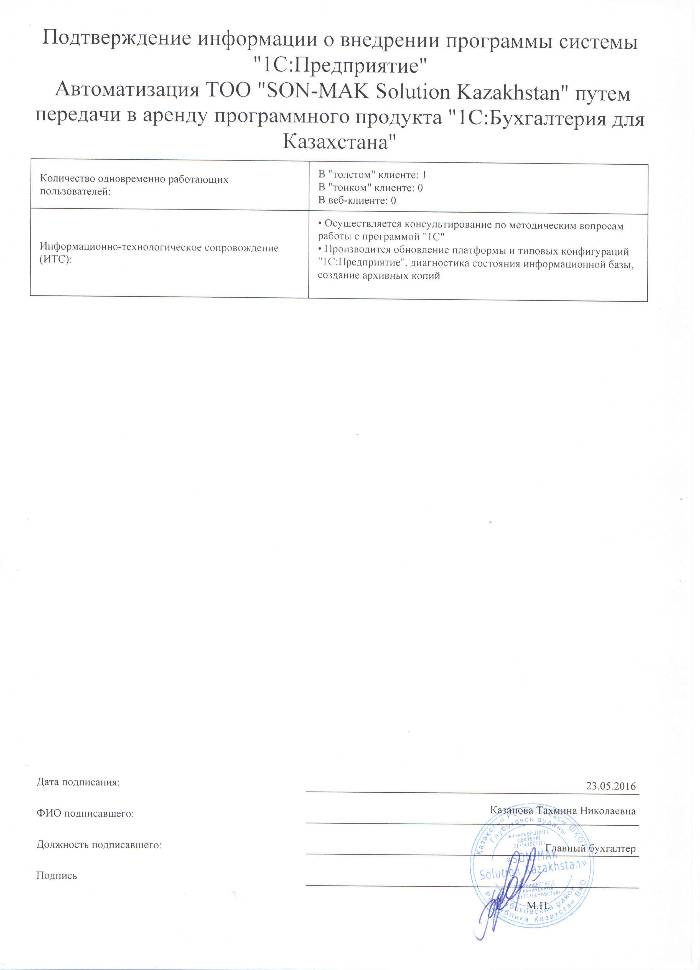 | Арендованное типовое решение: | 1С:Бухгалтерия 8 для Казахстана |