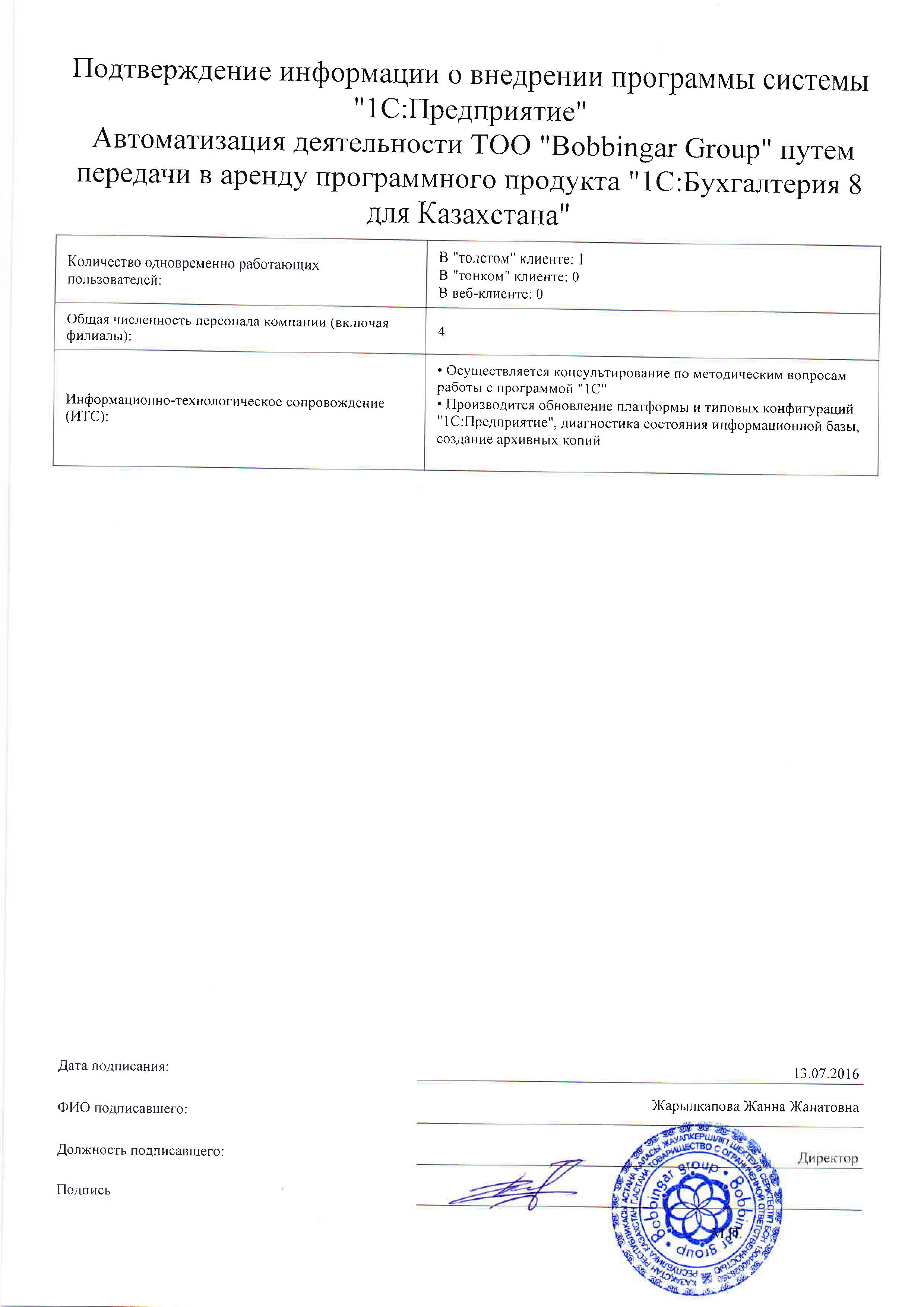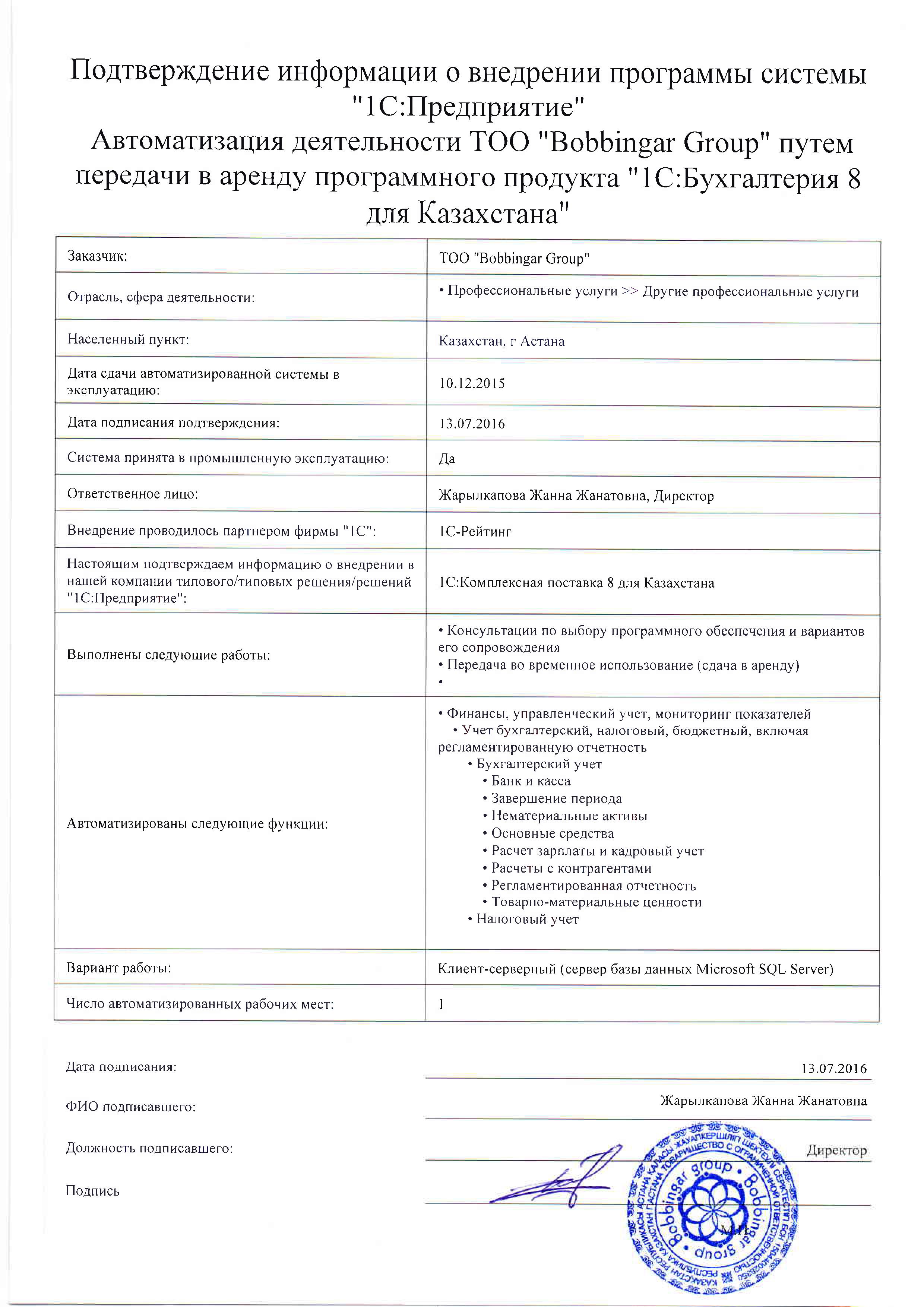 | Арендовано типовое решение: | 1С:Бухгалтерия 8 для Казахстана |