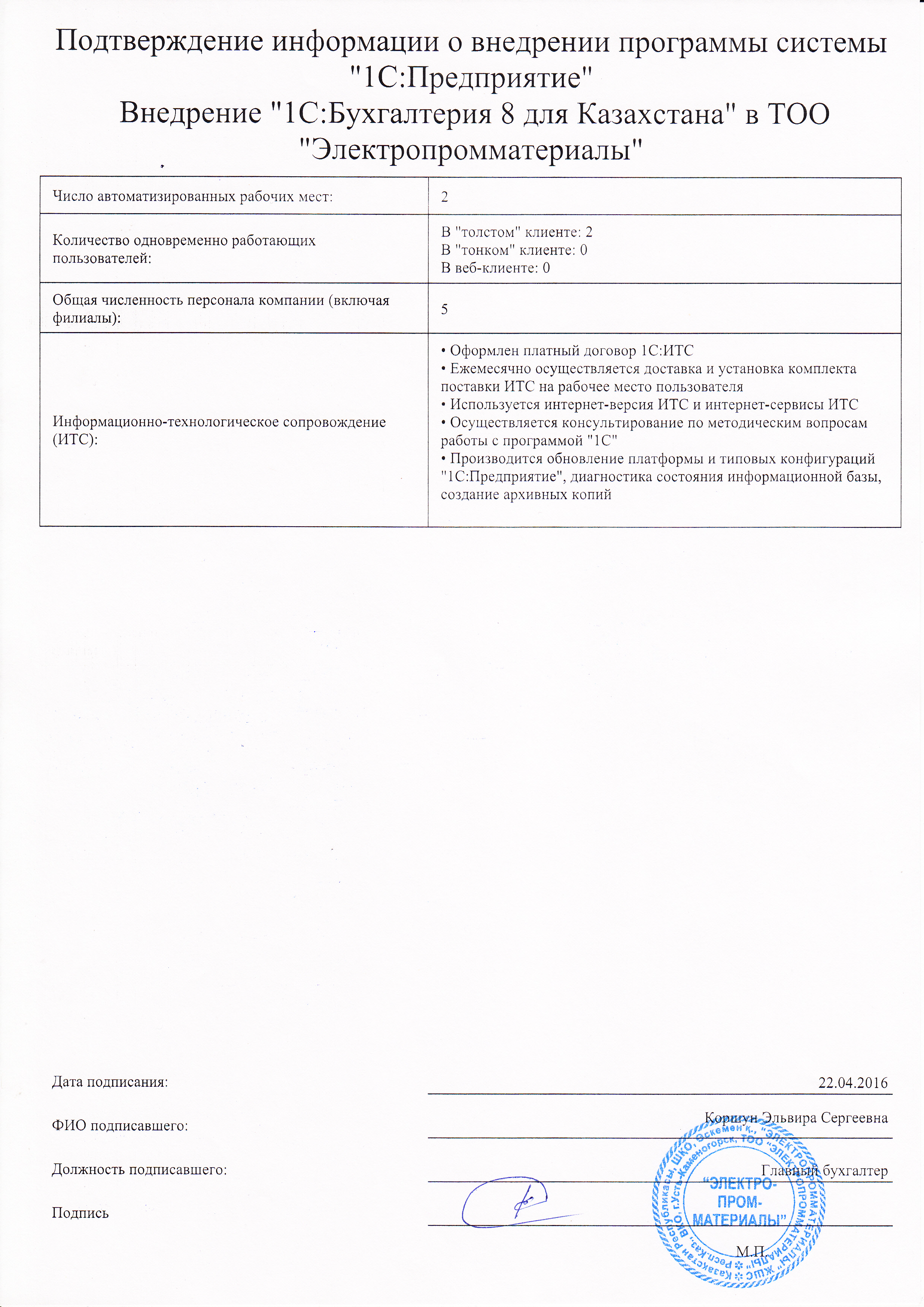 - Оформлен платный договор 1С:ИТС