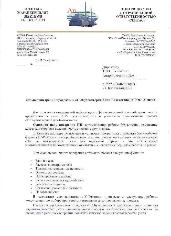 | Внедренное типовое решение: | 1С:Бухгалтерия 8 для Казахстана |