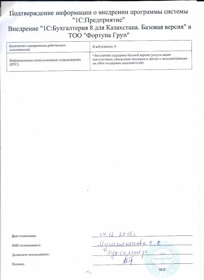 | Внедренное типовое решение: | 1С:Бухгалтерия 8 для Казахстана. Базовая версия |