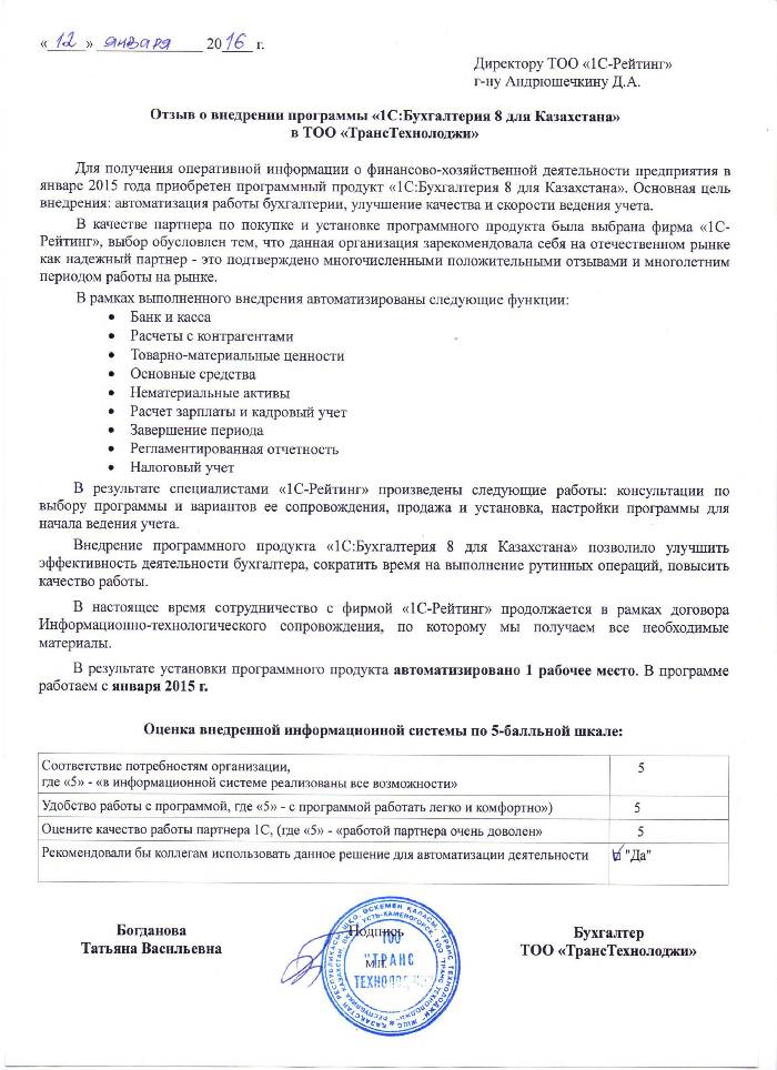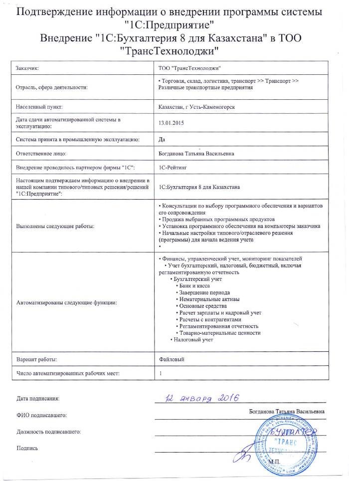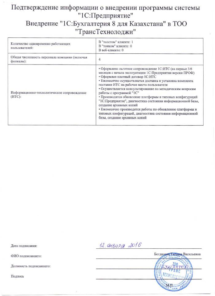| Внедренное типовое решение: | 1С:Бухгалтерия 8 для Казахстана |