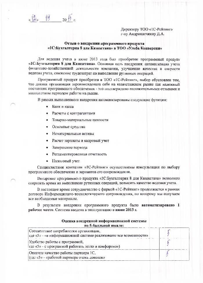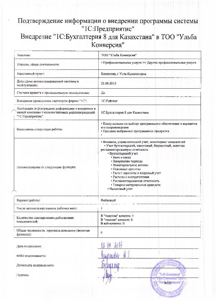 | Внедренное типовое решение: | 1С:Бухгалтерия 8 для Казахстана |