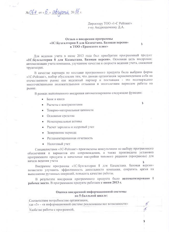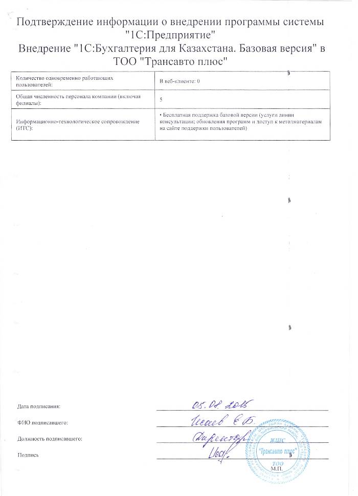 | Внедренное типовое решение: | 1С:Бухгалтерия 8 для Казахстана. Базовая версия |