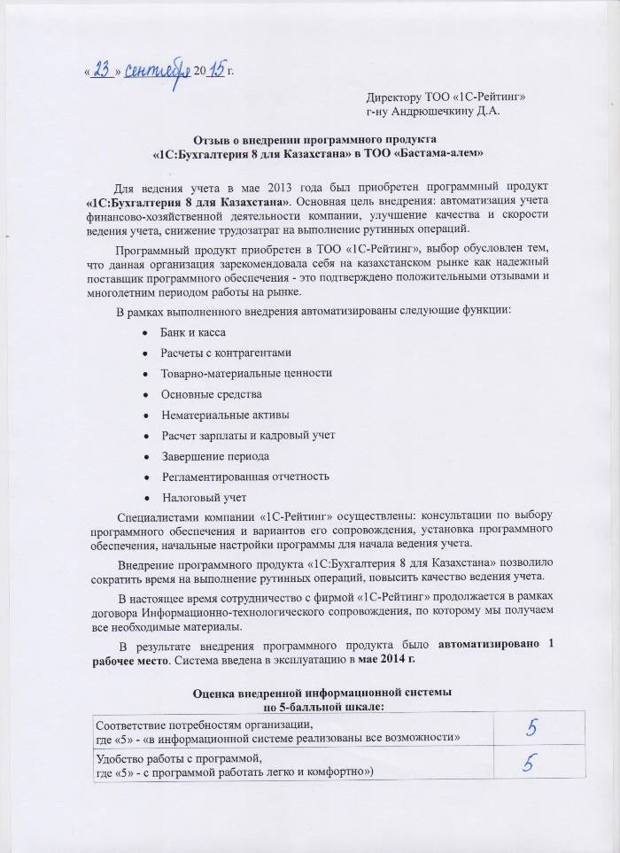 | Внедренное типовое решение: | 1С:Бухгалтерия для Казахстана |
