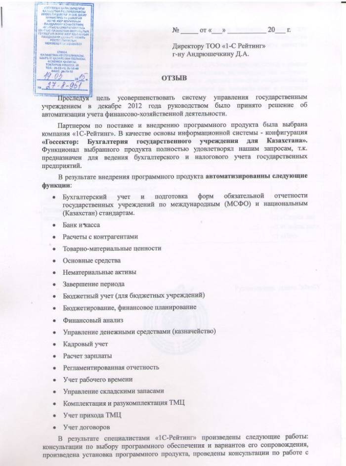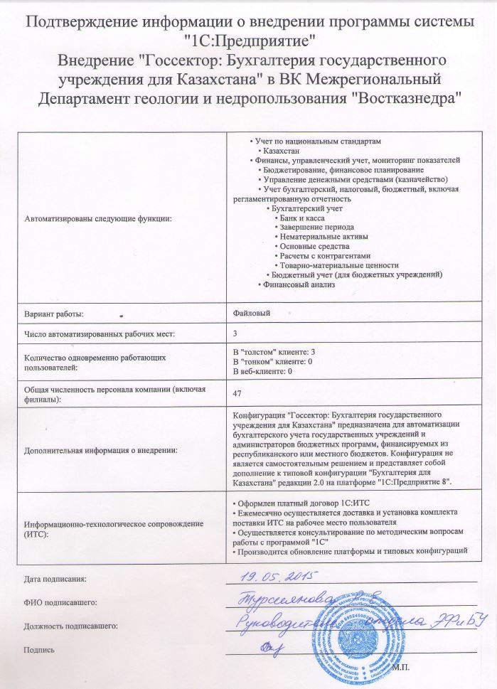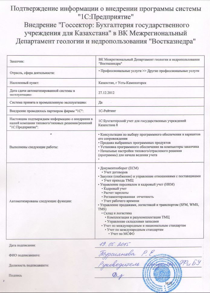 | Внедренное отраслевое решение: | Госсектор: Бухгалтерия государственного учреждения для Казахстана |