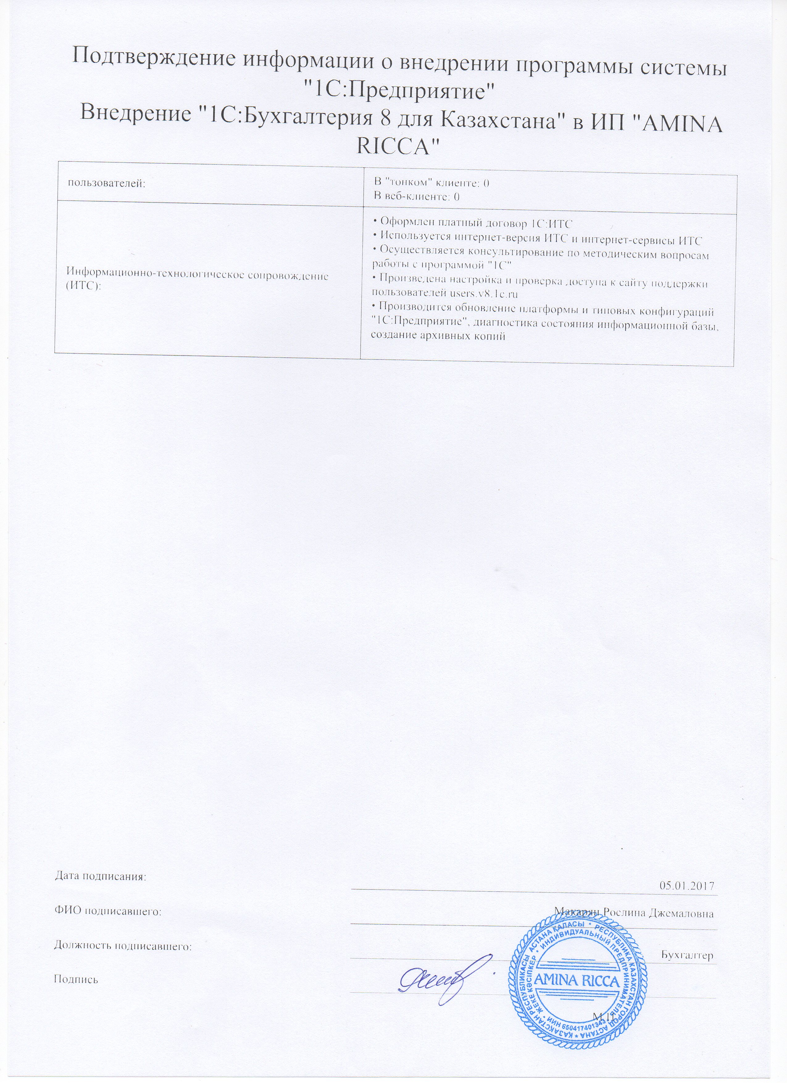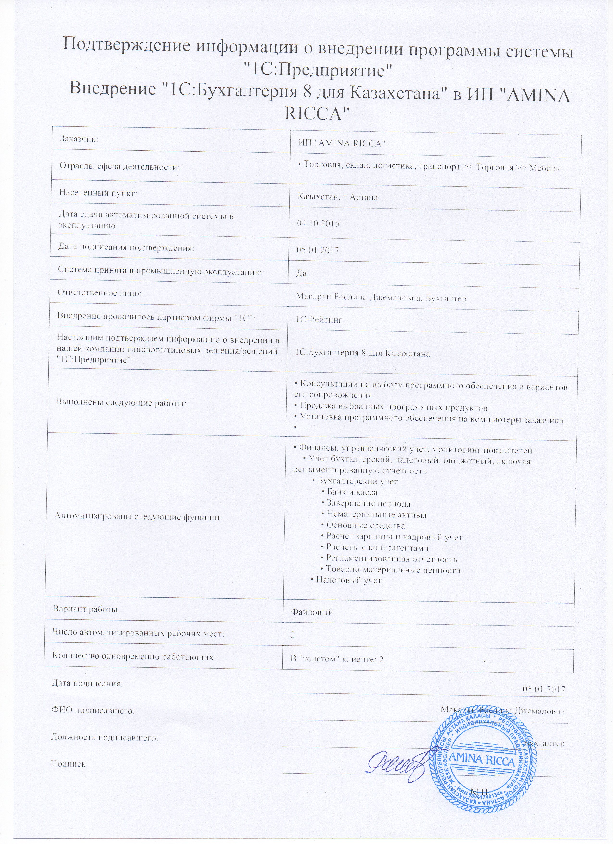 | Внедренное типовое решение: | 1С:Бухгалтерия 8 для Казахстана |