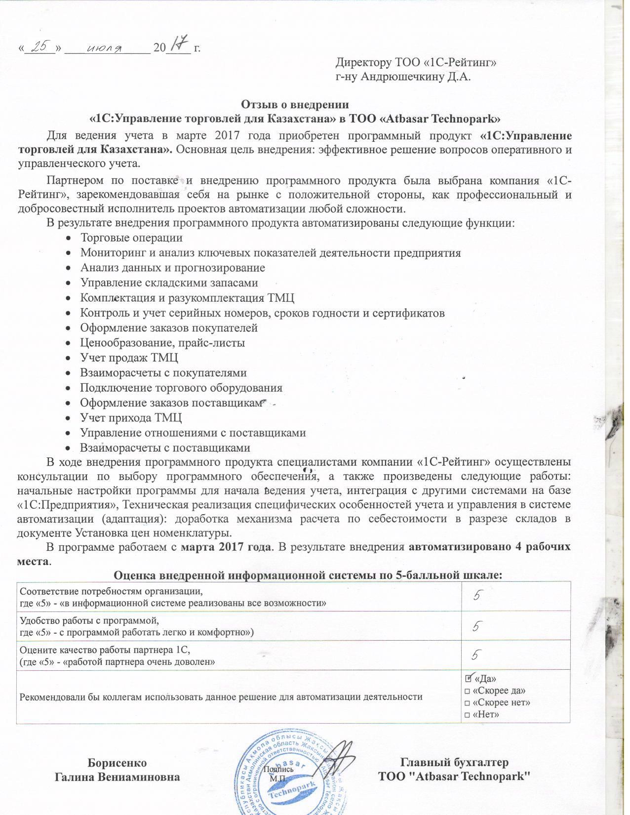 | Внедренное типовое решение: | 1С:Управление торговлей 8 для Казахстана |